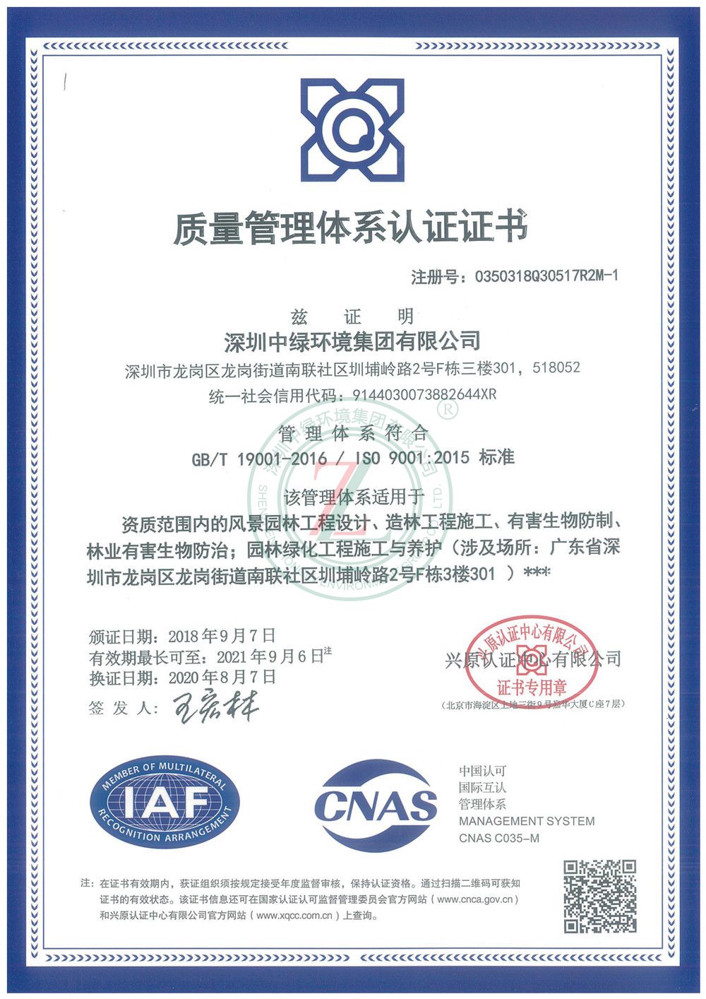 • 質量管理體系認證證書(園林-設計-造林) 質量管理體系認證證書(園林-設計-造林)